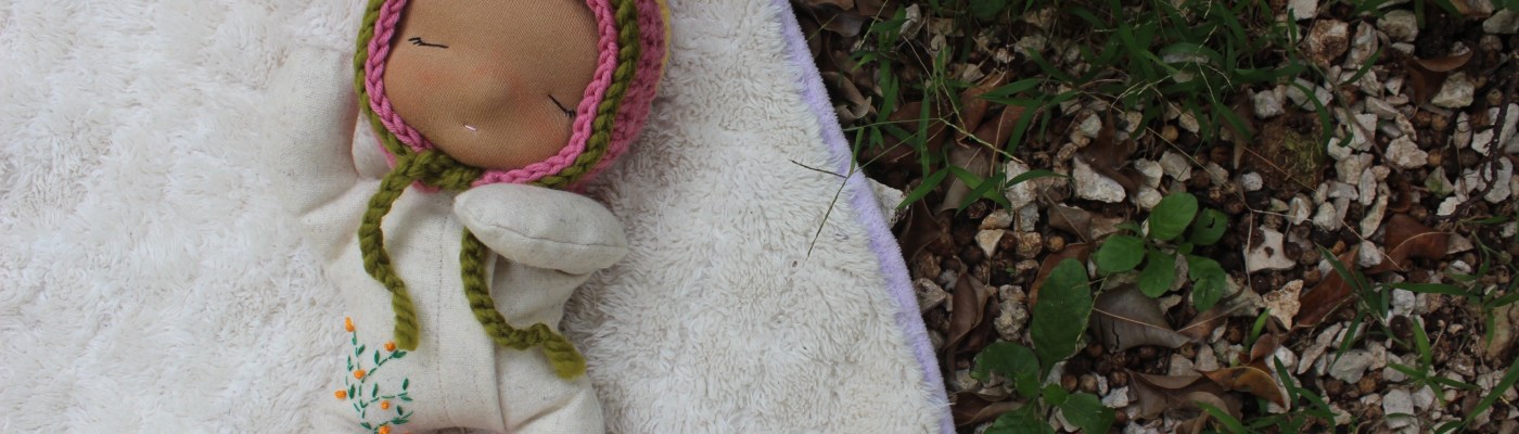 Suma is a Waldorf inspired baby girl made with all natural materials. She is a toy that is suitable for little hands 3 and over. I wouldn’t recommend her for children that still take things to their mouth, mostly because of the embroidered details on her pajamas and the crocheted accessories. However, you know your child better than anyone and who am I to tell you what toy they can play with. Just make sure you never leave a small child unsupervised with a stuff toy.