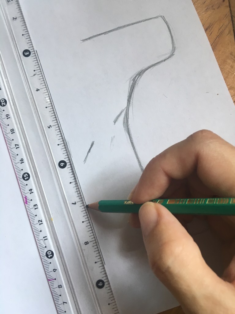 Now that I have all the marks for the back part of the diaper, I start to draw the back flap and the shape I want the diaper to be.