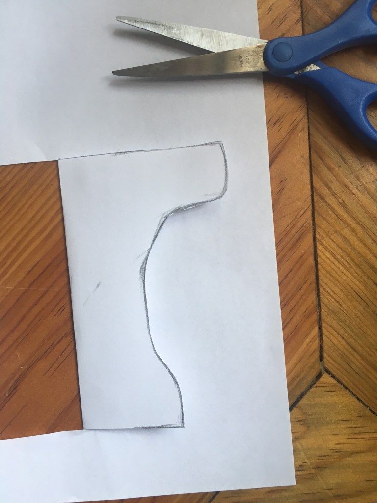 You can now cut the template like this and just fold the fabric in half and place the fold in the middle of the template. Then mark it on the fabric and cut the fabric and lining adding at least 1/4 ” seam allowance.