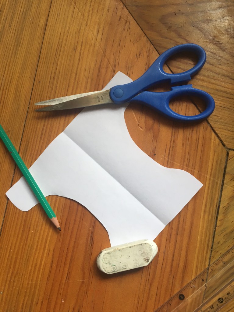 If you have a diaper for the doll in question, then you can just create a template from the diaper by putting the diaper on top of a paper and tracing it. Then you can cut the shape, transfer it to fabric leaving enough seam allowance, sew over the lines, and voilá, you have a diaper. Now for those that don’t have a diaper for the doll in question, this tutorial will come in handy. This is how I make the patterns for my babies’ diapers. Other people may have other ways, maybe even easier ways, but this is how I do it, so this is how I can teach it.
