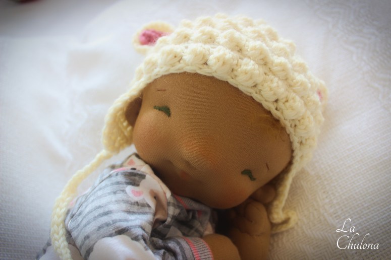 Elowyn is a 16 inch natural fibers art doll. She fits into preemie clothes but I did make all the clothes she’s wearing. Her day clothes are my favorite outfit that I made so far. I’m actually really proud of it.