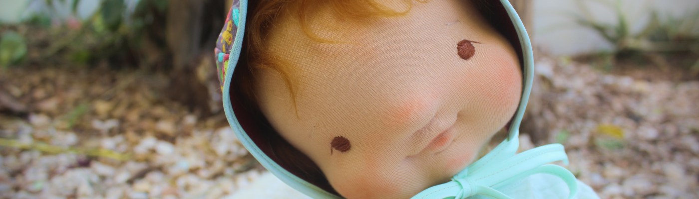 Malin is a 20 inch natural fibers art doll. She fits loosely into most newborn clothes but I did make most of the clothes she’s wearing.