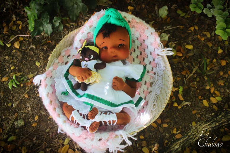 As you probably already know Belén is full of culture, sentiment, and music. She can’t dance Bomba yet, but I know she can’t wait to stand up and shake that skirt everywhere. She loves drums and she has good rhythm. Start a beat and she’ll be bopping her head and moving her little body to that rhythm. She has an ear for harmony and her favorite song is “Mamá Cuidame a Belén”, the song which she got her name from. She loves ruffles and bows, dolls, and flowers. She misses her island of Puerto Rico but she carries it in her heart. She keeps the Puerto Rican flame alive through the food she eats, the tales she gets to listen to, and the music of course. I guess she has a bigger piece of me in her than other previous dolls. I do love her very much, and she will be very hard to part with.