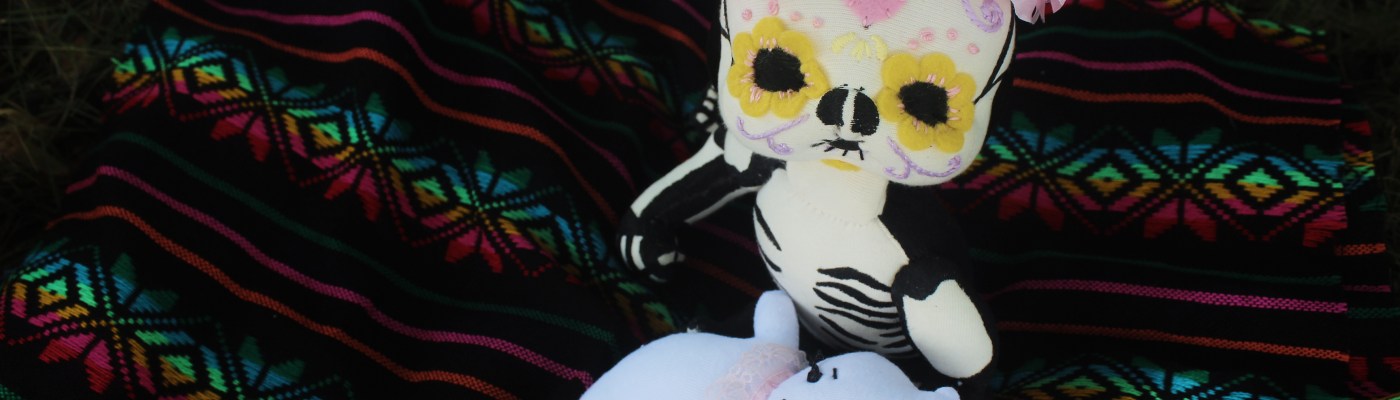 Caterina was born from all this amazing tradition and culture. She came way earlier than she was supposed to and we are not quite sure if she’ll return to the land of the dead. She just wants to be loved and doesn’t realize she’s not alive. She needs human contact just like any other baby. She’s full of joy and rarely cries. I don’t think she knows what Halloween is but she likes the little ghosts decorations and the Jack-O-Lanterns. That is why I made her a little ghost plushie as a traveling friend.