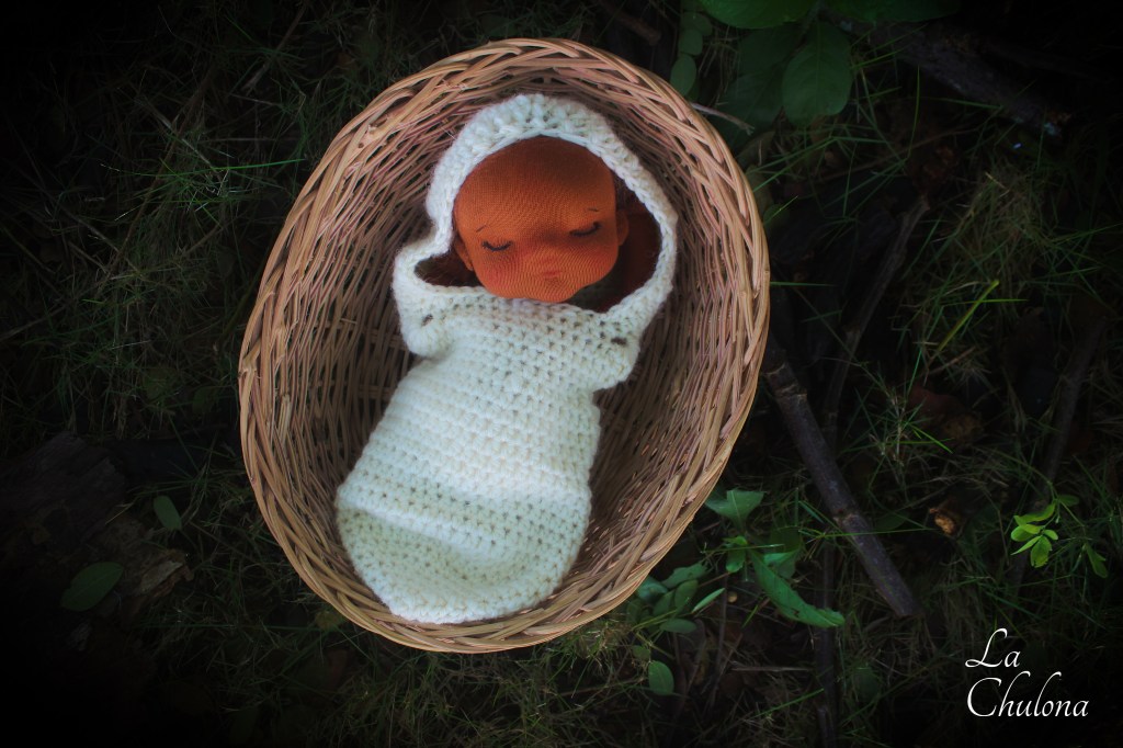It’s been a couple of crazy days on our part of the world. We had a hurricane that didn’t cause much damage but left us with a lot of rain and about two days without power. When the sun finally showed up and the electricity came back on, we found this sweet baby boy abandoned in front of our door. He was inside this wool crocheted cocoon, wearing nothing but a piece of cloth wrapped around as a diaper. I became very worried and held him right away while my husband searched around the neighborhood to see if we could find who left him there. Of course we had no luck and had to just keep him in the house. I gave him a warm bath and decided to make him some clothes. He’s real tiny and doesn’t really fit into real baby’s clothes.