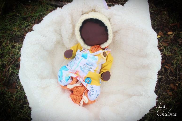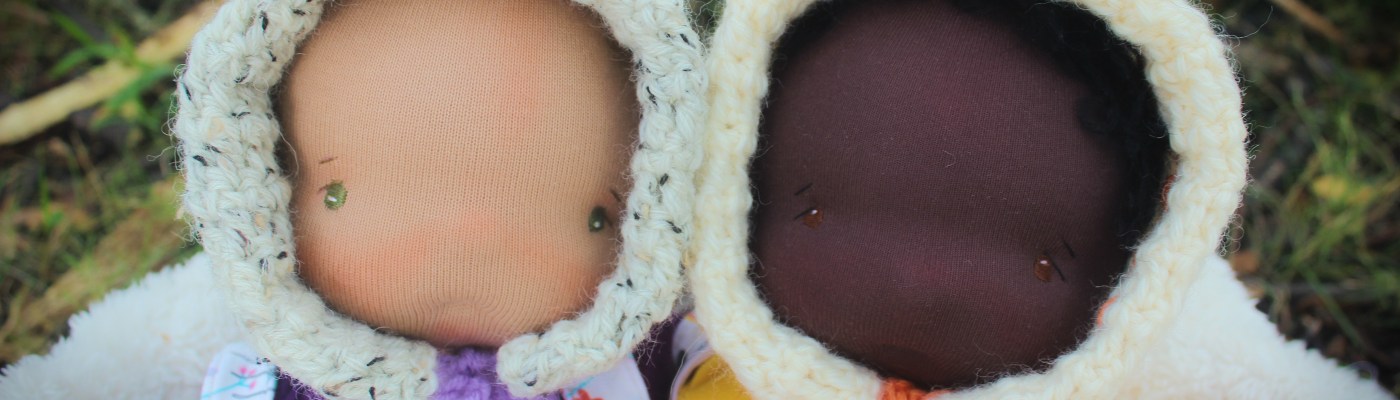 These baby girls are hoping to find new homes. These dolls are not meant to be toys. Even though they are made pretty sturdy, the weight and accessories do not make them suitable for children. These dolls are for gentle playing by an adult collector or an older child, 7 and up. They are natural fibers dolls, filled with clean wool. Their heads have been made in the traditional Waldorf style with some needle felting to make them firmer. Their clothes are made with cotton fabrics and the hats and booties with wool and cotton yarns. These dolls are pretty floppy and very fun to pose.