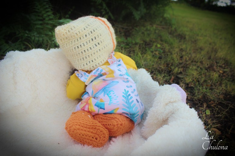 • Handmade long sleeve onesie with snap closures. (This is the first time I attempt to make a onesie, they are not perfect but they are imperfectly perfectly functional.)