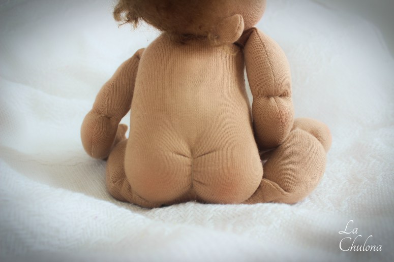 Paula was the first one to show her face and show me how much I love this pattern. I also learned with her a new way to attach the head that I think is much stronger and also gives me more control over the final look of the doll. Her skin is Laib Yala in Light brown and her hair is a light brown mohair reborn wig securely sewn to her head. Her green eyes have been hand embroidered. Paula weights 900 grams or 1.98 pounds.