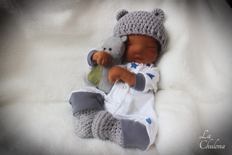 Let me formerly introduce you to Román. Most of you have seen some behind the scenes of the making of this baby. He was born along another doll meant for my daughter. I must say Román, as well as he’s previous sister Alondra, were not meant to be this big. They were both planned as 16 inch babies, but somehow they took a life of their own and turned out bigger than I imagined. Is not a bad thing of course, Román is one of the cutest babies I have ever made, but I wish sometimes my dolls would listen to me and at least stay the size I want them to. Oh well, sometimes you can’t fight them.