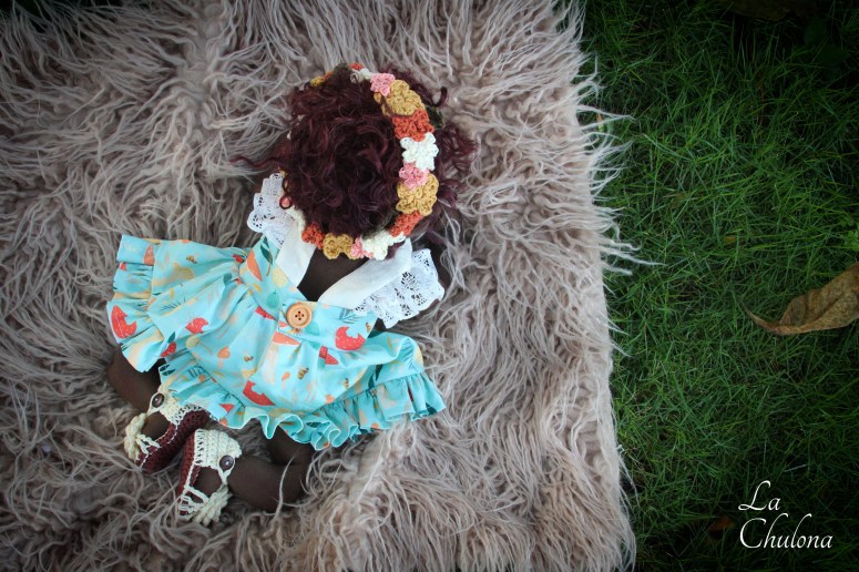 When I came back to make this big baby girl, I felt refreshed and ready. I took my time with her and tried to pay attention to every detail. I took extra steps to make sure she came out the way I imagined her. I spent way too much time on her dress because I had to do some things by hand. But let me tell you, it was worth it. I kind of want to make one in my size. The skirt is so round and has some weight to it, the fabric is so nice and soft and I love the way the lace looks on it. I had to make her matching accessories and my favorite one is her flower crown. I haven’t made one of these I don’t think ever, It was a little tricky but I figured it out. Well as you can probably tell by now. I really love how this little one turned out. So let me move on to tell you about her.