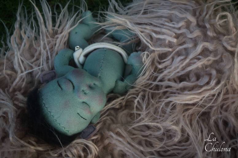 What should you expect of Herman? Well, he sleeps a lot, mostly because he needs electricity to charge and come to life. You see, this baby was born way too soon and didn’t make it alive but one of the doctors refused to accept this, so he experimented with him until he found a way to give him life again. By that time the body was already starting to decompose, the reason for his the coloring. Don’t worry, he doesn’t smell or anything. Once he brought this little baby to life, he bathed him, and his body kind of starting reacting to his new life. The only thing is that he has to be connected to a power source for a couple of hours (that is what the screws are for), to be able to take life for the same amount of time he was connected for. That is why he sleeps so much. But then again, he’s a baby, a premature one also, so sleeping most of the day is expected.