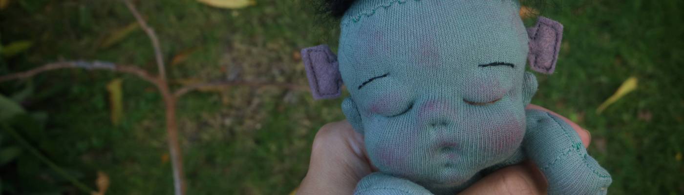 By this time last year I was already making Christmas babies but this time I am enjoying too much my Halloween ones. I have been wanting to make a Frankenstein’s monster baby in natural fibers for a while now, but I was a little scared that it was not going to be liked by most of my followers. This year, I just want to make what fills my heart with joy and this baby surely does. It has taken me forever to take his photos and I keep blaming it on the weather but I think we all know I just want to spend a little more time with him.