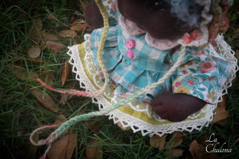 Afina took me a little longer than most of my little dolls take and that is because I got excited with her clothes. Not only did I make her a flower costume. I decided to also make her an outfit with layers that you can then mix and match in different ways and combinations. It’s like having three outfits in one. I also got a little too excited with black tea staining and I literally stained every single piece of clothing except for the diaper. I love the sort of vintage look that it gives to the clothes and I believe I will be staining much more fabric in the future.