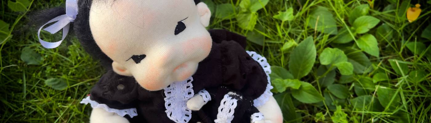 Now let me tell you about the new baby that was just born from my hands. I named her Miércoles (Wednesday is Spanish) because she was born last Wednesday. I think she is so cute and smart. She seems to be very observant and well behaved. However, she is rather pale. She is also a little weird. She rarely smiles and when she does, is at the least pleasant things, like dead flowers, or somber music. I must say I find her a little odd and a bit scary, but still very cute. Oh and have I mentioned her favorite color seems to be black? Doctors say it is because she is very young and at that age the high contrast between black and white is more interesting for babies than actual colors. I am not sure I believe that but I guess we can only wait. Oh, and let’s not forget how she didn’t let me put a head to her doll. Every time I would try to make the head, she would take the body and play with it, even sleep with it. I’m not going to lie, a headless doll is the stuff of nightmares for me, but hey, she is happy, so I went with it.