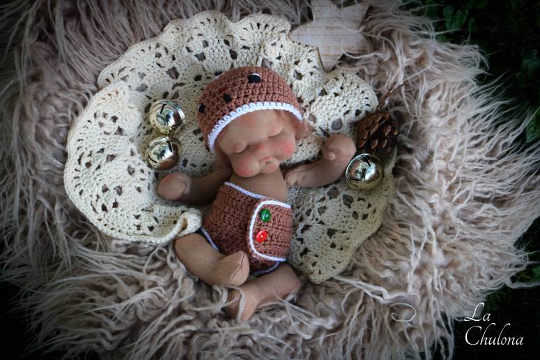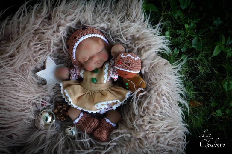 Only 40 days until Christmas!!! Wow! I only have a couple more Christmas babies this year. So I’m trying to hurry to get them ready in time for Santa. Last year I made three mini babies inspired in Gingerbread cookies. This year I went with just the one but in a bigger size. I am so in love with her. She really is the sweetest.