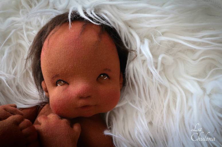 I bring you the last baby of the year. This is Clementina. A baby filled with new techniques, well new techniques for me. This baby took me the longest to make. This was a challenging yet satisfying doll to make. I wanted to, again, try my hand at making a baby with the proportions of a newborn. This has become a tradition now. Every end of the year I try my hand at making a big newborn size doll. I always try new things to accomplish my goals. So this was Clementina’s year.