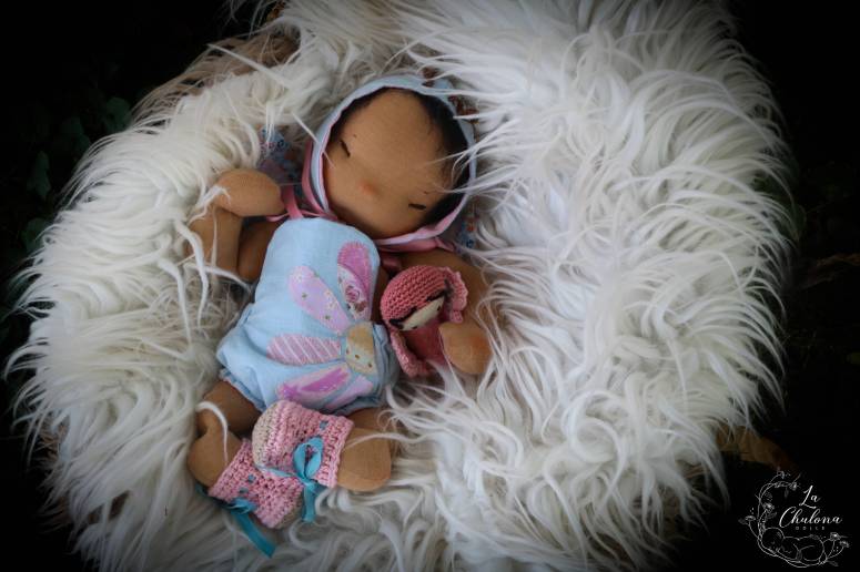 Hello to everyone. I hope the weather is treating you well. I know it might be very cold to some of you and my “cold” weather does not compare to yours, but when you are not used to the cold at all, 12°C feels freezing. So I am freezing right now. haha! And because I am thinking of warmer weather and spring I made a sweet baby girl dressed in Spring colors, flowers, and butterlfies.
