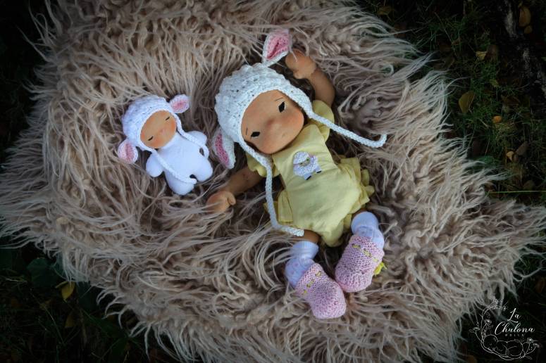6 to 7 inch Waldorf Inspired Doll– (Size is approximate) 355 USD per doll. In this size the torso and legs are one piece. The arms and legs only bend at the shoulders and hip. They have floppy heads . They come with either, embroidered, hand crocheted wild brushable mohair, or big loop mohair wig caps. Dolls will come dressed in a 5 piece outfit. For example: a diaper, dress, diaper cover, head piece, and booties. There will always be at least one item in crochet or knitted unless otherwise instructed by you. You can order up to 3 of these in one custom spot.