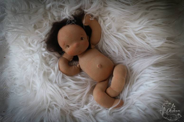 With these custom baby dolls you will be able to choose, some of the sizes, gender, skin tone, eye color or closed eyes, hair color and style (wild brushable mohair, loop mohair, yarn, or embroidered hair). Fabric hair and wigs can be done but is limited to the choices I can find. Weft options are available but will have an extra cost, we will need to discuss it. For clothes we will talk about colors and clothes styles you like but I will tell you I work best with some creative freedom. My Pinterest and Instagram are full of photos of my previous dolls, so you can have a better idea of what I can do and what you would like your baby to look like, but remember I will be making only the sizes described in this blog post. My work is pretty organic and every doll has its own personality. I will NOT make copies of my previous dolls nor from other doll makers. I don’t even think I can, every doll is unique, that is the magic of handmade. However, I can make a doll that resembles a doll I previously made. Even though I don’t make copyrighted dolls and characters, I rather stay out of trouble, we might be able to change the doll enough so it doesn’t infringe on copyright territory. You just need to be open for that. Magical beings, historical figures, and characters from books are good. I also don’t make portraits dolls but I can make a doll that resembles someone.